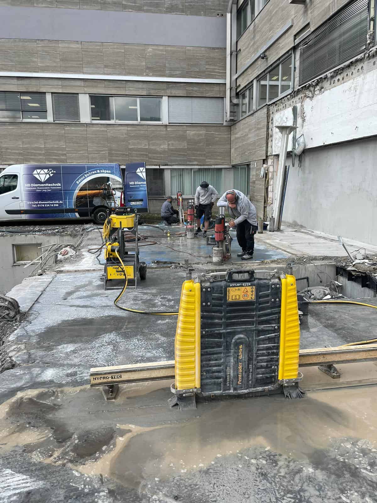 Wir haben das Unternehmen mit umfangreichen Diamantschneidarbeiten beauftragt. Zwei tragende Wände, ein komplettes Treppenhaus, eine Tür sowie zwei Fenster mussten fachgerecht herausgeschnitten und vollständig entfernt werden. Zusätzlich wurden Kernlochbohrungen für das Einsetzen von Trägern ausgeführt.
